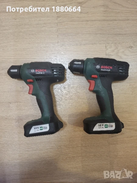 Перфектно работещи 2 акумулаторни бормашини модел EasyDrill 12. Батерията е вградена и не се сваля. Държат се перфектно. Без зарядно. Цената е за 1 брой. Зарядното е на букса и може да се включи срещу 20 лв. Ако някой иска двете за 100 лв - получава и зарядното като бонус.