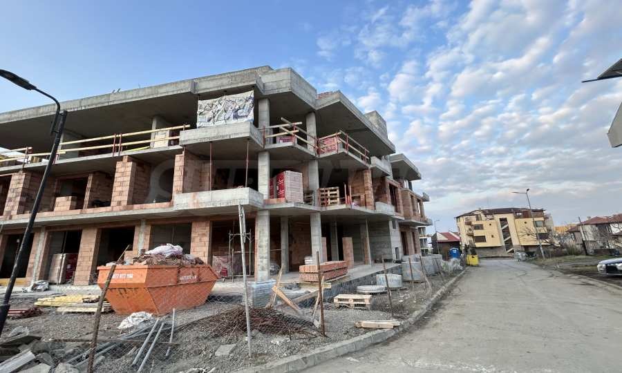 в апартаменти: изпълнени всички вертикални и хоризонтални разводки, подови сифони, водомерни възли /без санитария и спирателна арматура/; Eл. инсталации - изпълнени всички окабелявания, силова и слаботокова; гладка вътрешна гипсо-варова мазилка и циментова замазка; бани и санитарни възли изпълнени на варо-циментова мазилка и циментова замазка; външни входни врати.