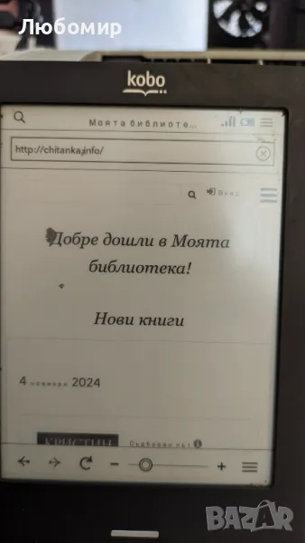 С Kobo Touch, не е нужно да спирате да четете защото батерията Ви е