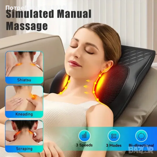 - Перфектен за масажи на шията, гърба, рамото и краката