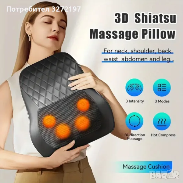 - Насладете се на релаксиращ 3D омесен масаж с възглавницата за масаж