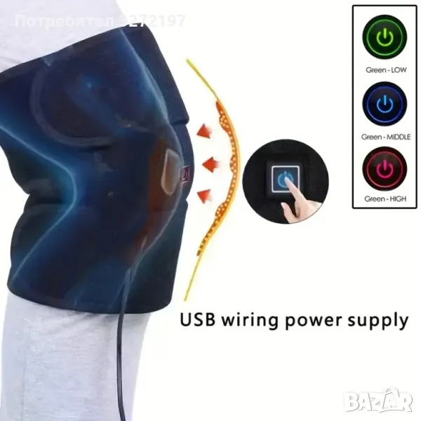 USB Инфрачервен нагревателен наколенник,3 степени на загряване, защита на ставите, поддържане на