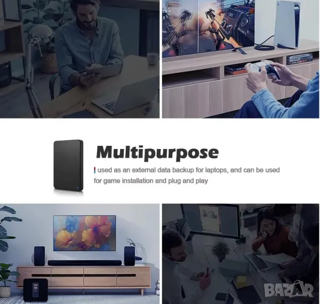 Външен Хард Диск USB 3.0 Разширено Хранилище за PlayStation Конзола PS4 PS5 PC MacBook Лаптоп