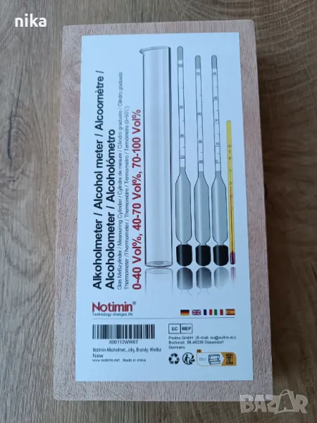 Комплект от мерителни съдове за алкохол, с термометър, 0-100 vol%, 0-50°C