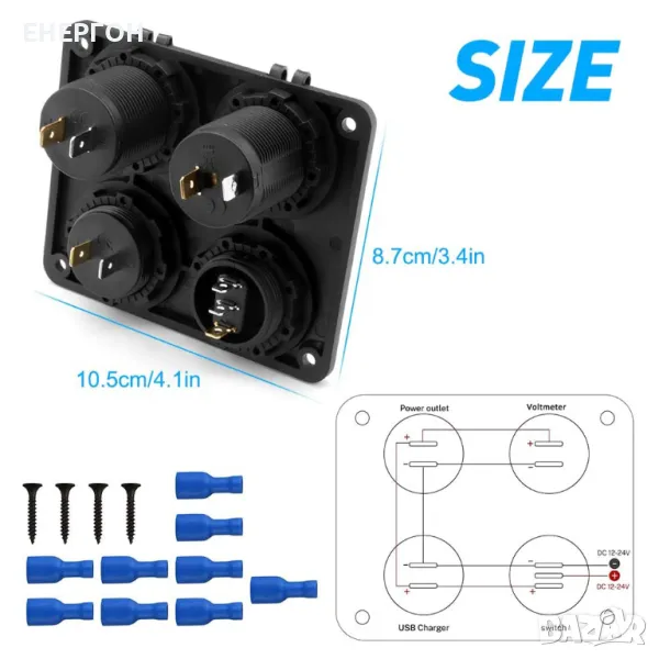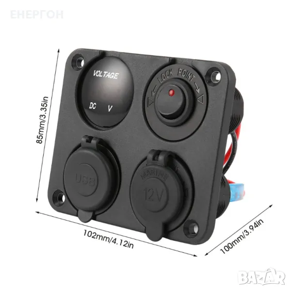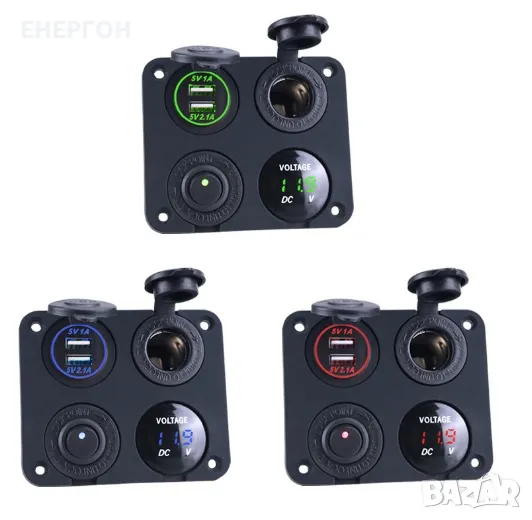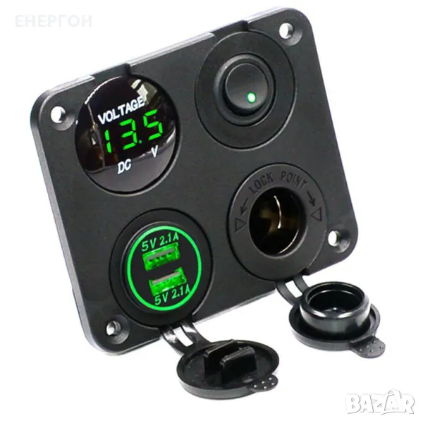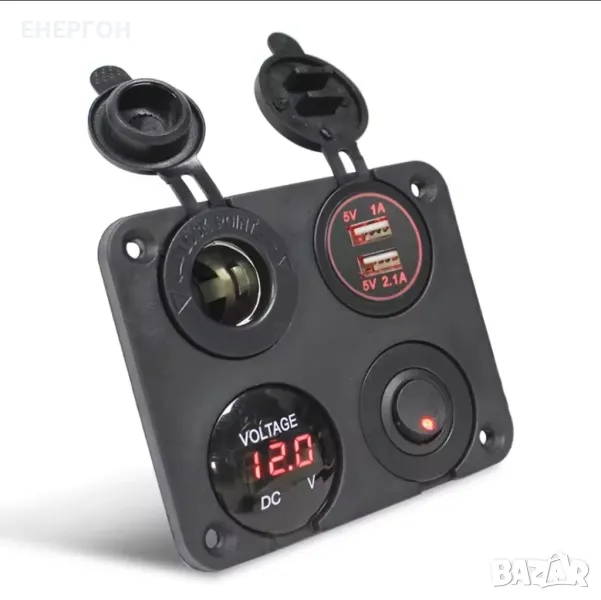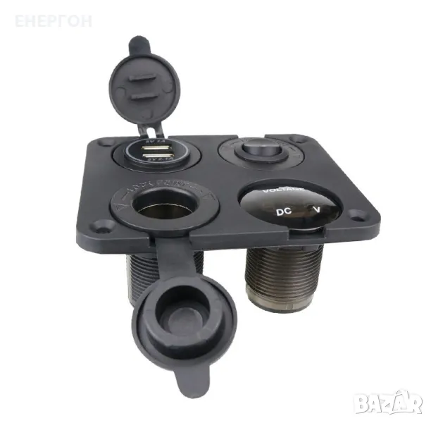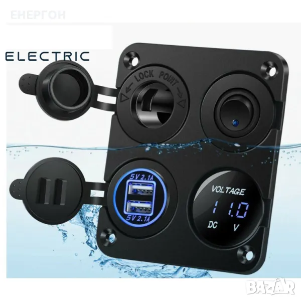 ВОДОЗАЩИТЕНО ТАБЛО за вграждане- панел с двойно USB зарядно, волтметър,12V/24v букса