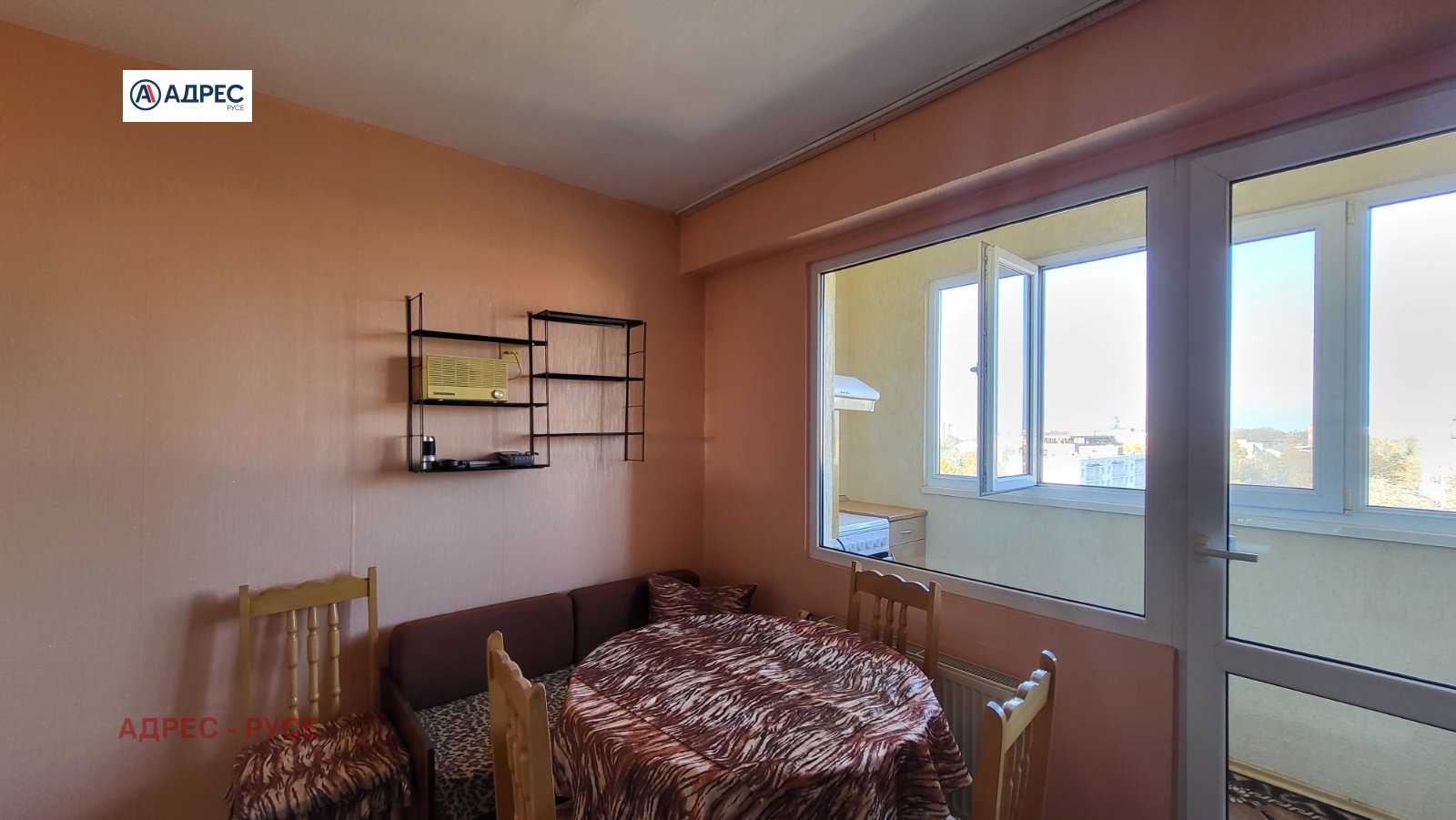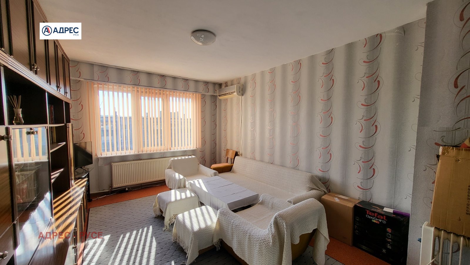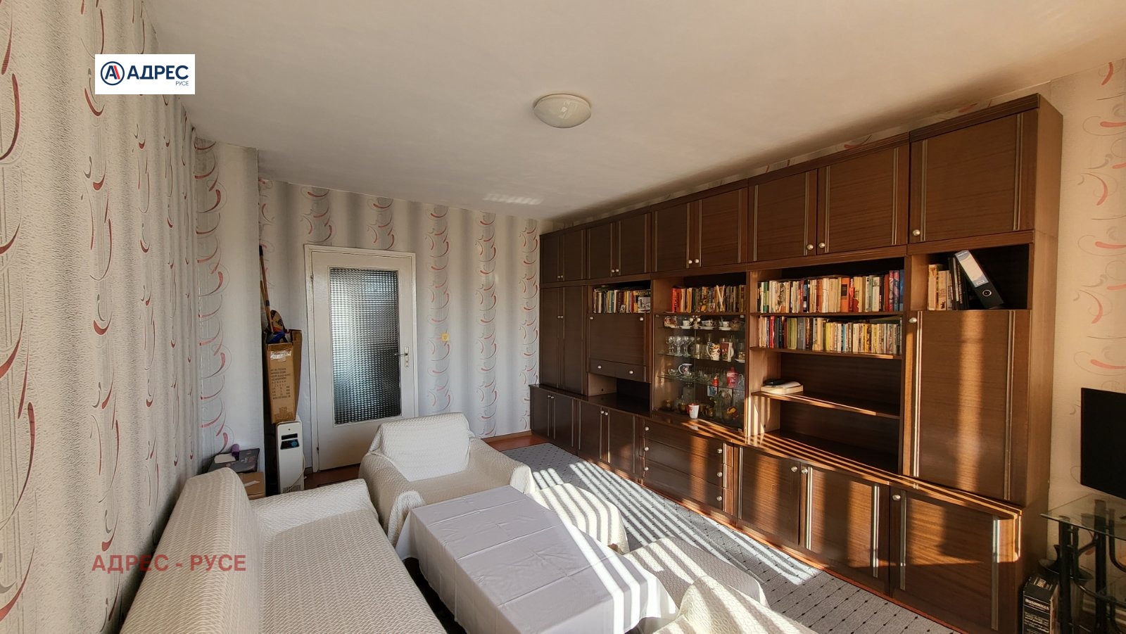 Предлагаме Ви тристаен апартамент с централен ТЕЦ в района на Немската гимназия. Представлява голям коридор, кухня с излаз на закрита тераса, просторен и светъл хол, спалня с излаз на тераса, втора спалня, баня и санитарен възел отделно. Продава се с наличното по снимките обзавеждане и оборудване, два климатика. Жилището е със сменена PVC дограма, изложението е Север-Юг. Паркинг пред блока. За огледи: 0890567890 - офис Адрес Русе