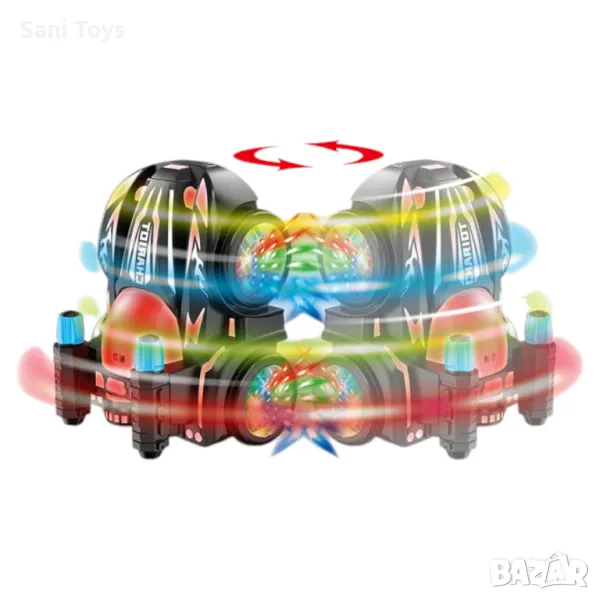 Една от най-впечатляващите функции на тази играчка е способността й да изпълнява завладяващи 360-градусови каскади, които удивляват и забавляват децата.За да направи времето за игра още по-увлекателно, каскадьорската кола е оборудвана с атрактивни светлини и музикални ефекти, които активират множество сетива и създават по-интерактивна и стимулираща атмосфера.