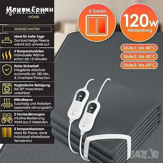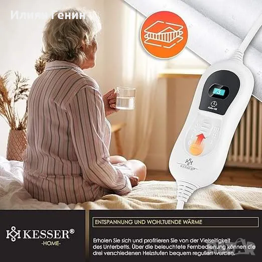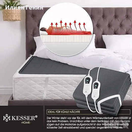 𝐇𝐎𝐂𝐇𝐖𝐄𝐑𝐓𝐈𝐆𝐄𝐒 𝐌𝐀𝐓𝐄𝐑𝐈𝐀𝐋 𝐔𝐍𝐃 Отлично: Нашето подгряващо долно одеяло работи подобно на нашето електрическо одеяло с марка KESSER, но разликата е в употребата. Можете да лежите върху топлинната подложка, изработена от щадяща кожата поларена материя, която диша, и да я загреете предварително преди лягане. С различните нива на отопление можете сами да решите колко топло искате да бъде.