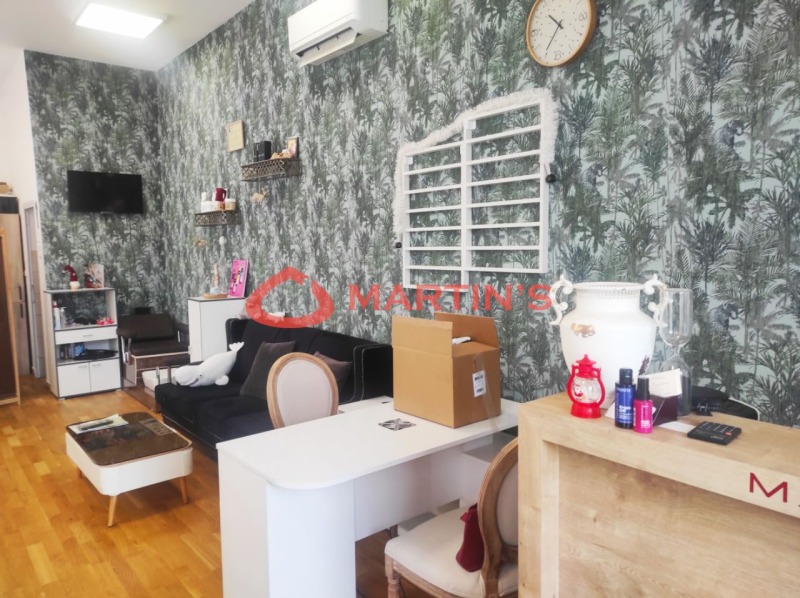 Имотът притежава голям потенциал за всякакъв тип бизнес, като офис, представителство, школа, магазин, студио за красота и др. В момента е с действащ бизнес (студио за красота), разработен от три години, което може веднага да заработи. В салона има обособени обзаведени и оборудвани зони за фризьорство, маникюр, педикюр и зона за масаж. Помещението е самостоятелно с отделен вход и разполага със санитарен възел. Цената на цялото оборудване е 8000 евро.