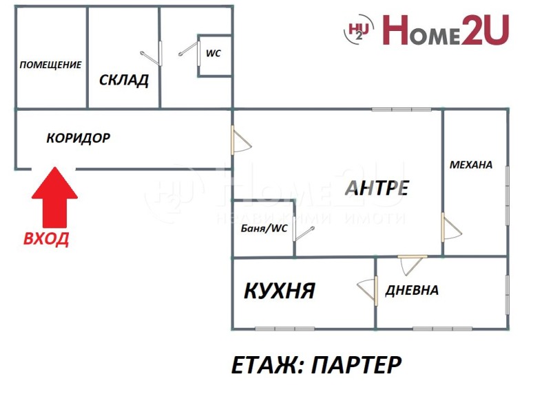 На ниво партер - гараж, три сутеренни стай, баня с тоалетна, голяма механа, голямо помещение (предназначено за склад) и малък склад.