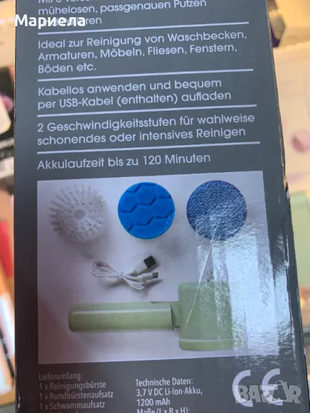 Съдържание на кутията: 1 x четка за почистване, 1 x приставка за кръгла четка, 1 x приставка за гъба, 1 x приставка за полиране, 1 x USB кабел.