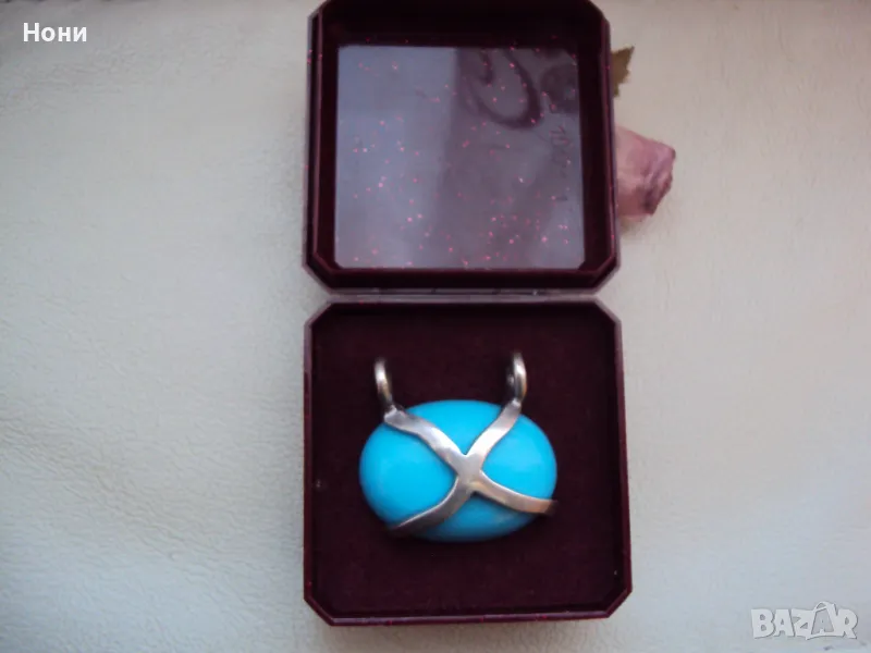 Висулка от естествен тюркоаз обкован със сребро → Обява 48101608