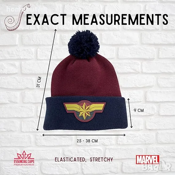 Помпонът добавя стилен завършек, а плътната плетка осигурява топлина и комфорт. Перфектна за феновете на супергероите и модерния стил!
