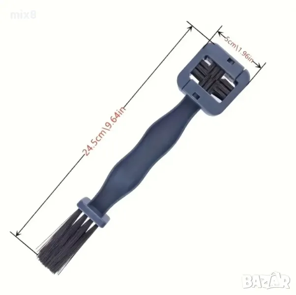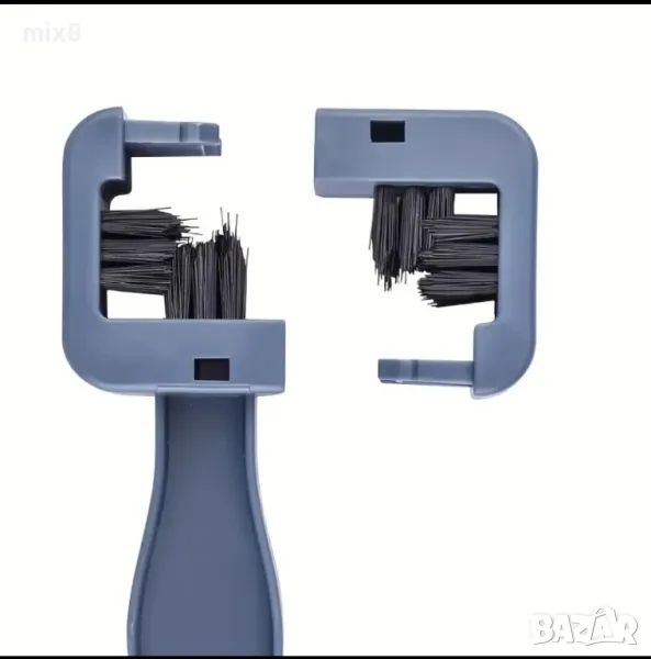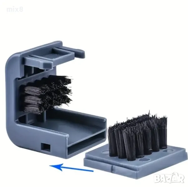 Четката е с капаче за почистване на всички страни от веригата едновременно.