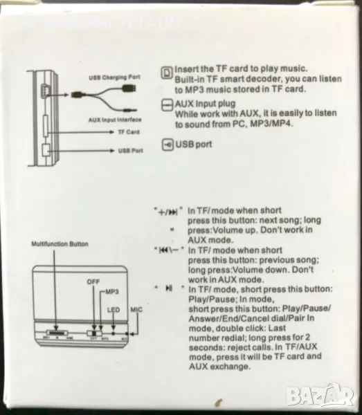 1. Поддържа MP3 формат, SD MiniSD, играта TF карта