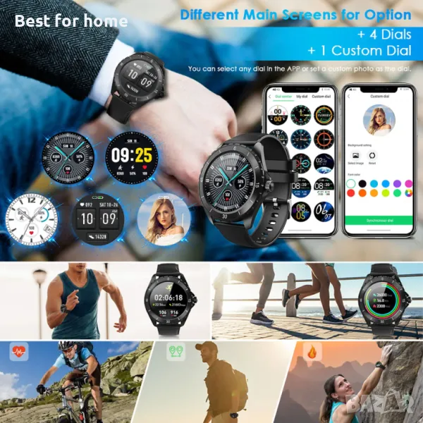 Персонализиран циферблат : 4 циферблата, които могат да се избират на часовника, и 1 циферблат може да се персонализира от центъра за набиране или от личния албум в приложението. „GloryFit – циферблат на часовник – персонализиран циферблат – синхронен циферблат на часовника“.