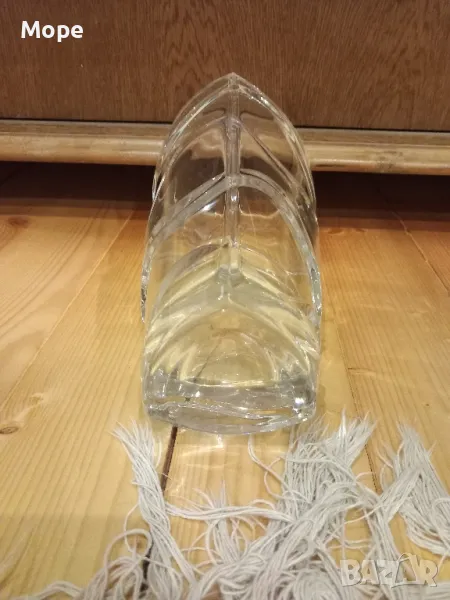 Стъклена триъгълна ваза с височина 35 см. дебелина на стъклото 8 мм. с релеф в много добро състояние. Изпращам с Еконт и Спиди, за София предпочитам лично предаване.