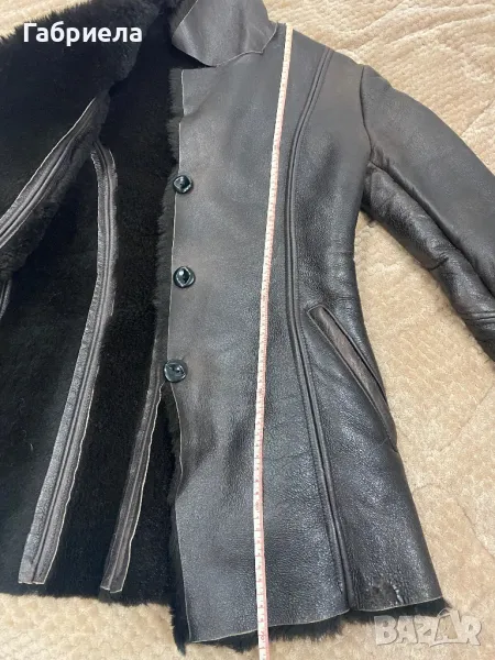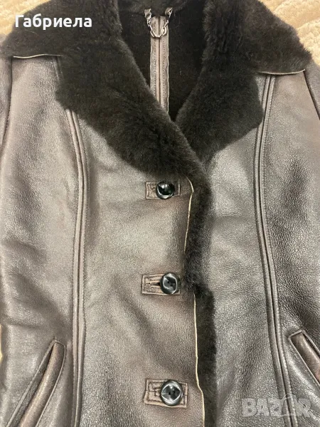Топло зимно яке изцяло от естествена кожа отвътре и отвън. Модела е тип сако леко втален, стои много стилно. Размер 38 на фирма SEZAR. Цвят тъмно кафяв. Измерено от мен с дължина 70см, ръкав 63см, подмишниците са измерени отвътре от ръб до ръб 44см.
