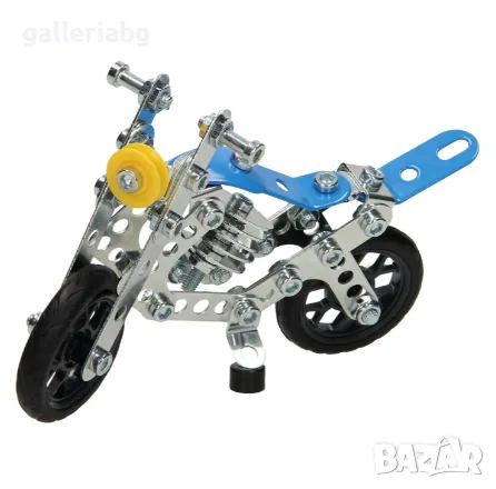 С комплекта метална конструкция можете да направите готин и здрав мотоциклет! Изберете един от пет дизайна и сглобете двигателя с включените инструменти. Комплектът се състои от 139 части и включва инструменти.