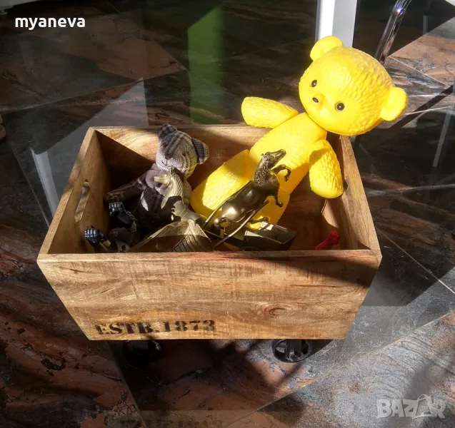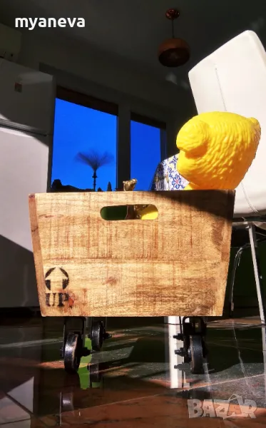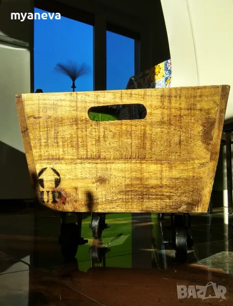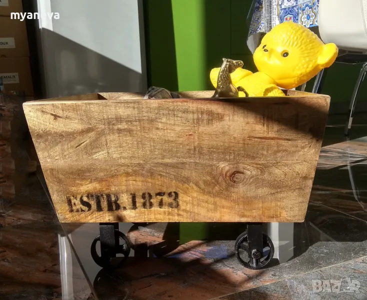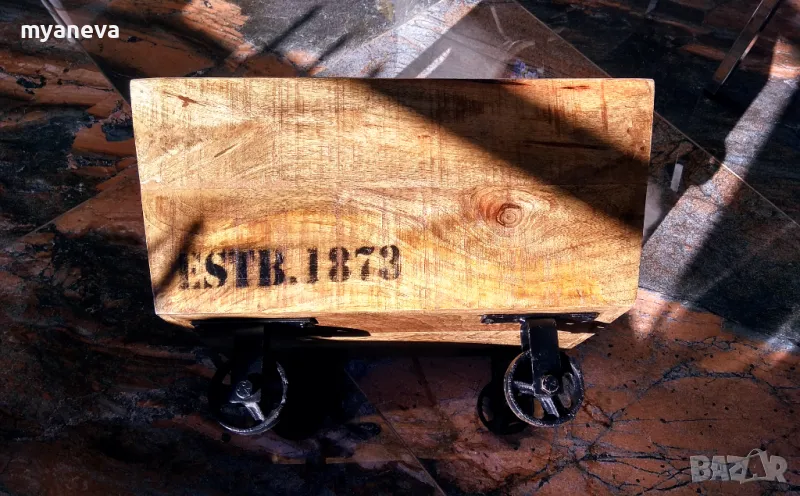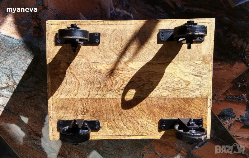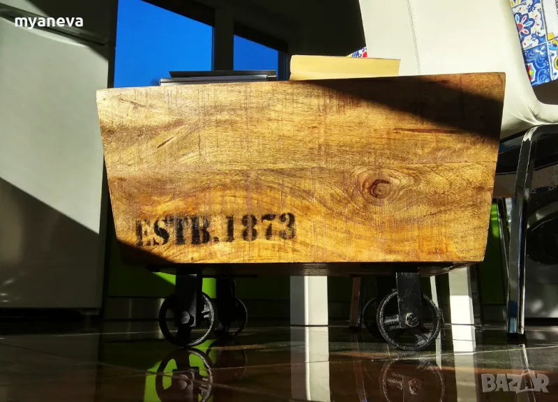 Vintage шкаф от дъб с ръчно ковани колела , за играчки , вино , декорация . Размер 30 /45 /35 см . Цена 150 лв.