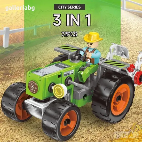 Страхотен конструктор трактор 3в1 с фигурка, състоящ се от 72 части.