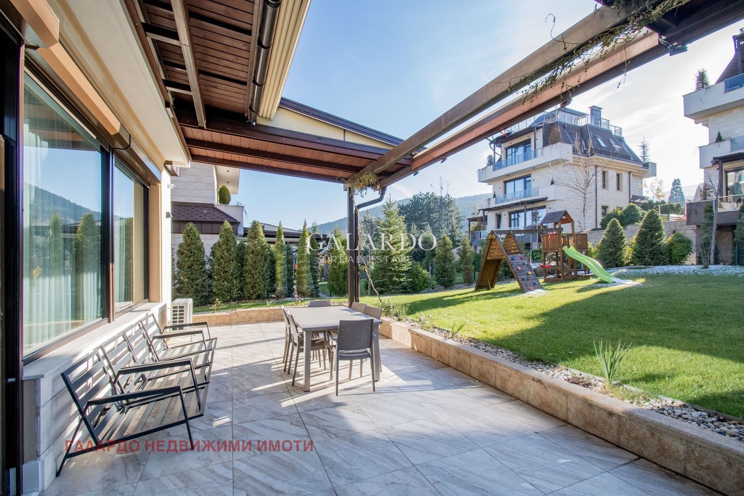 Galardo Real Estate прeдставя на Вашето внимание просторна напълно обзаведена къща с 4 спални в затворен луксозен комплекс