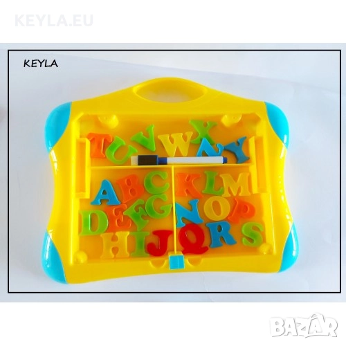 Комплекта съдържа дъска, комплект магнитни букви и маркер с гъбичка.
