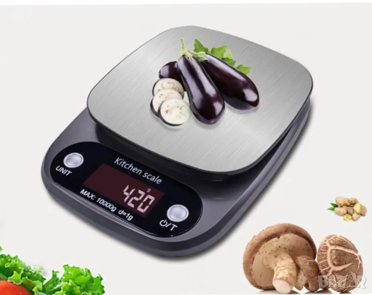 Кухненска везна, неръждаема стомана/ABS, цифров дисплей, 5кг, черна → Обява 48108783