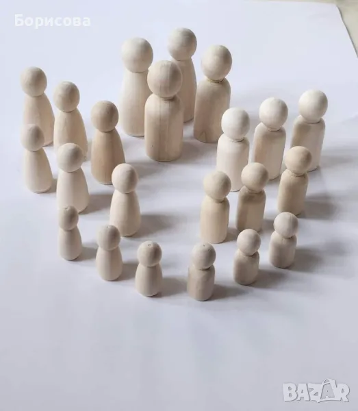 Комплект от 52бр дървени конусовидни фигури/ кукли → Обява 48108842