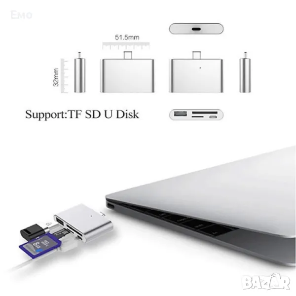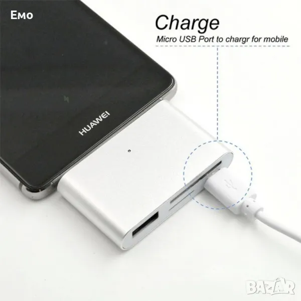Мултифункционален адаптер и кардрийдър с фукнция за зареждане на телефони CA94
