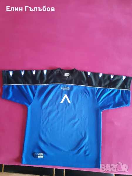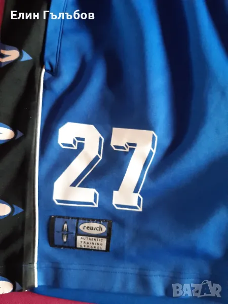 Фланелката и гащетата си притежават всички необходими щампи на фирмата обличащата през този период отбора на Левски - reusch , които са везани .