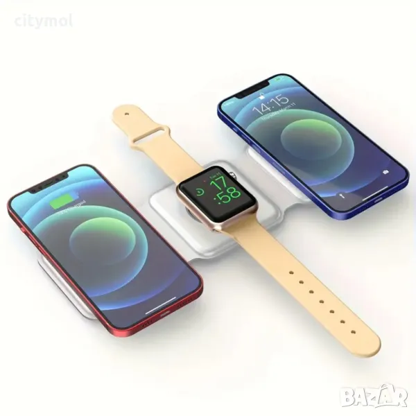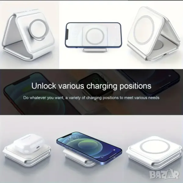 Безжично зарядно устройство, сгъваемо устройство 3 в 1, магнитна станция за зареждане
