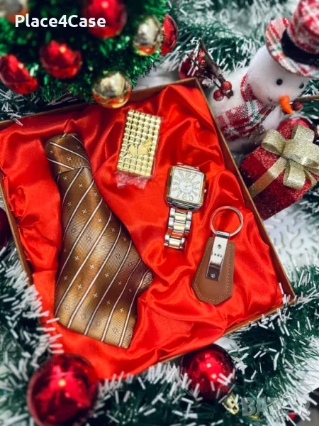 Комплекта включва: Вратовръзка,часовник,ключодържател и запалка в подходяща кутия направо за подаряване.