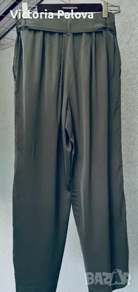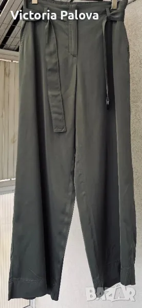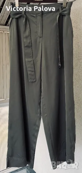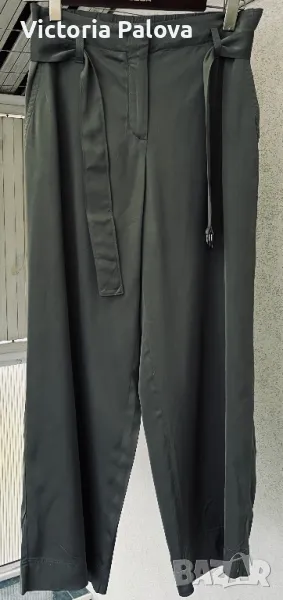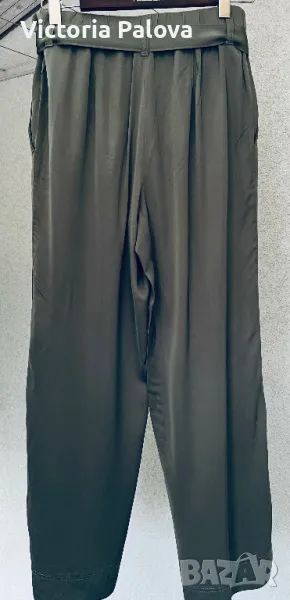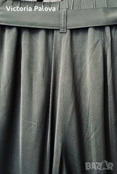 Панталонът е привлекателен с деликатно блестящата си вискоза ( еластан 2%) високо качество, гладка и комфортна, пада тежко и красиво. Цветът е с нюанс на крокодил, крачолите са с широка кройка, а талията може да се подчертае женствено с колана. Скосените джобове допълват визията. Реалната цена на панталона е 229 евро. Талия - от 40 до 48см ( отзад с ластична вставка), дължина от колана - 93см, отвътре - 63см, широчината на крачола горе - 32см, долу - 25см.