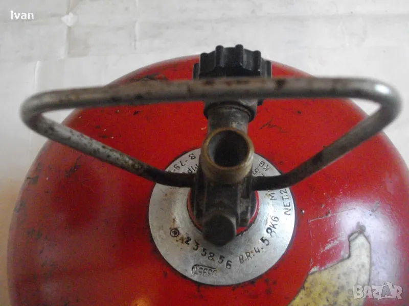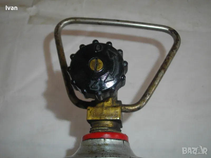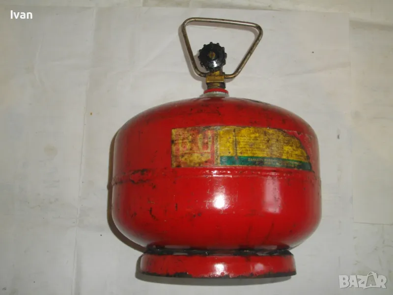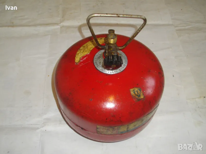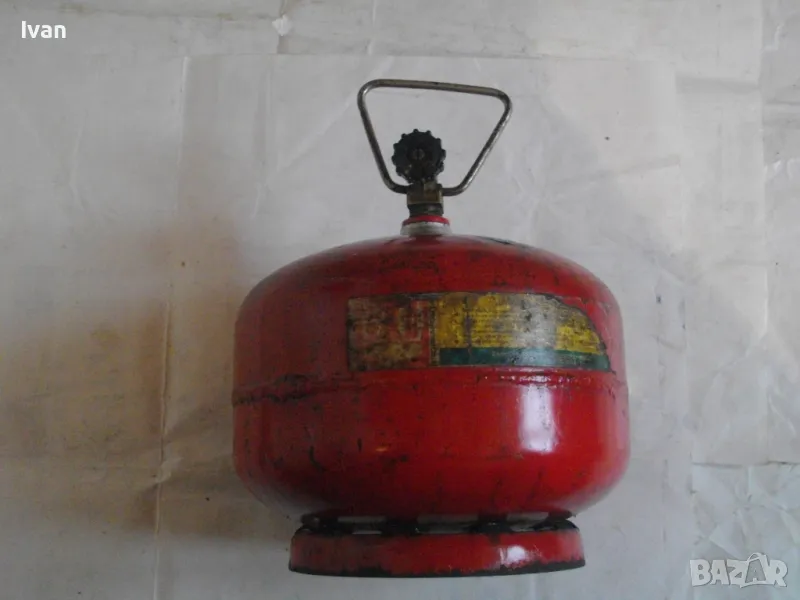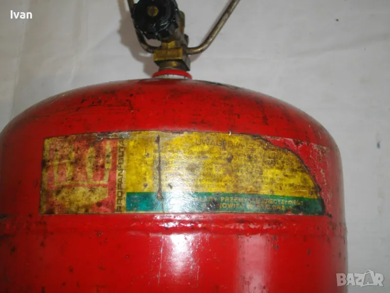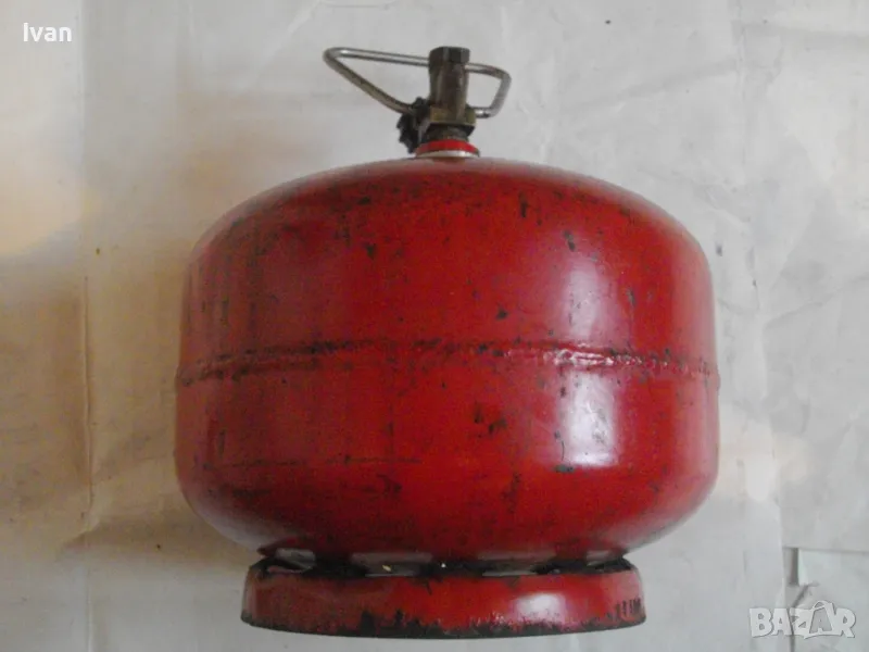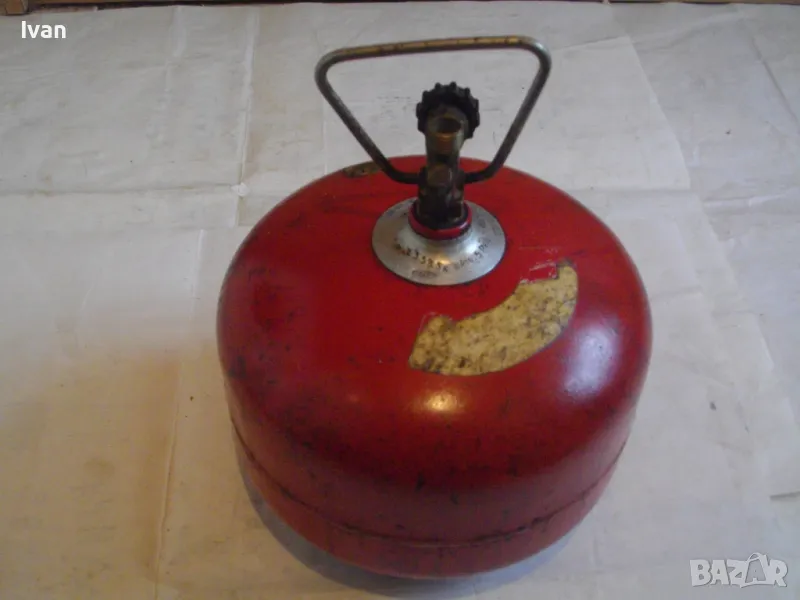 Бутилка тип газов котлон кръгла за газ пропан-бутан - цена 99 лв. Полско производство. С фабричните си стикери. Малко ползван, в отлично състояние. Без ръжди, без корозия, без развалени резби. Маркировки - net 2,0 kg, Mies Z8 Pa 2,5 MPa. Бутилката е за газов котлон или за скачване с горелка. Старо качество, масивно - маркировка 1989 г. Бронзова глава, с бакелит спирателен кран. Резба за скачване отгоре - М12. Стоманена дръжка за носене. Височина на бутилката - 23 см. Тегло . 2,8 кг. Налична малко газ в нея за проба и тест.