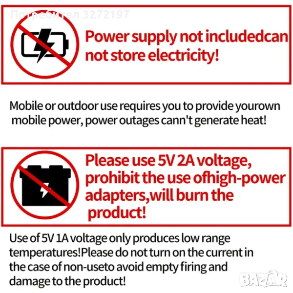 Захранване: USB захранване