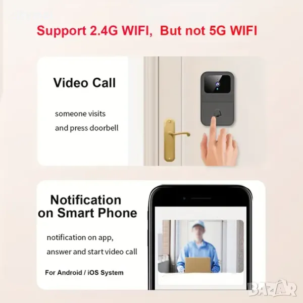 Видео звънеца поддържа само 2.4G WiFi (не поддържа 5G).