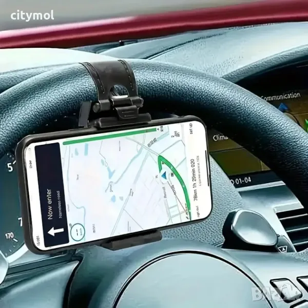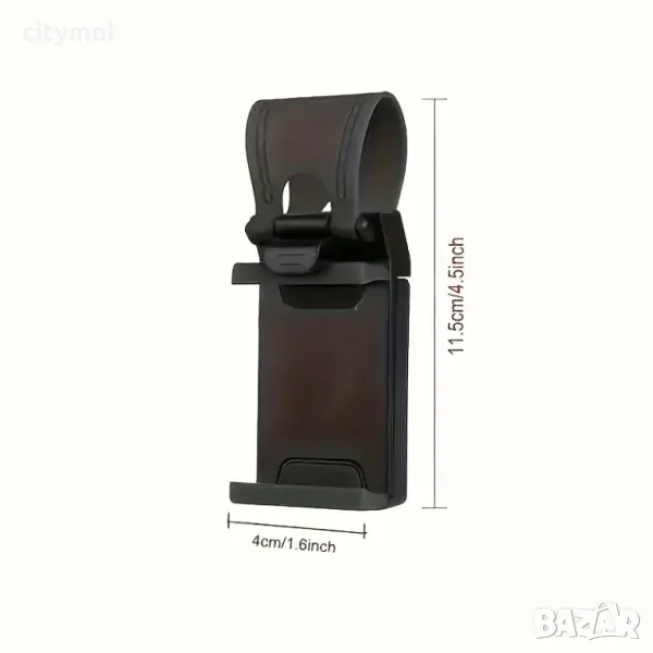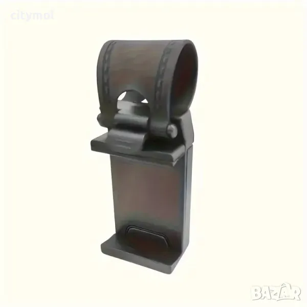 Представяме ви удобна поставка, произведена от усилена пластмаса, която се закрепва към волана на вашия автомобил. Стойката разполага с регулируеми рамена, с цел да бъде съвместима с повечето ни познати мобилни устройства. Пластичният дизайн позволява безпроблемно, лесно и бързо закрепяне към различни размери волани, без допълнителна нужда от инструменти. Стойката е толкова компактна, че може да бъде местена навсякъде по волана, за да се избегне евентуално неудобство при шофиране. Силиконовите държачи осигуряват надеждна гаранция, че поставеното устройство няма да бъде надраскано или повредено от механични въздействия.