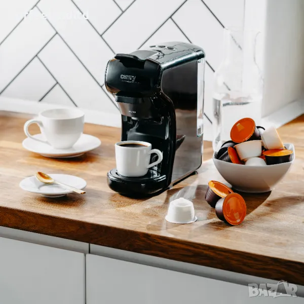 Капсулната кафемашина CR4414 ви позволява да приготвите 9 различни вида кафе в едно устройство, което ще удовлетвори членовете на домакинството с различни вкусови предпочитания. Функционалността ѝ се потвърждава и от факта, че е оборудвана с 9 приставки за кафе капсули. Благодарение на това не се ограничаваме до кафе от една марка, а можем да приготвим любими напитки от Nespresso, Dolce Gusto, Lavazza Blue, Lavazza А Modo Mio, Caffitali. Ако сте от хората, които не могат да си представят сутрин без черно кафе или следобед без ароматно капучино, мултикапсулната еспресо машина CR 4414 е продуктът за вас. Заема малко място на плота, изглежда елегантно и ви позволява да приготвяте най-популярните кафета. Машината разполага със съд за вода с вместимост 0,6 литра, който ще ви помогне да приготвите няколко чаши малко черно кафе, лате или традиционно кафе с мляко с едно пълнене. Най-голямото предимство на устройството, освен елегантния му дизайн и малкия размер, е простотата на използване.