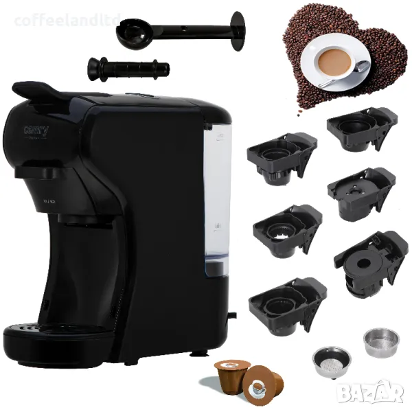 · Предлага се с 5 сменяеми адаптера за капсули, съвместими със: