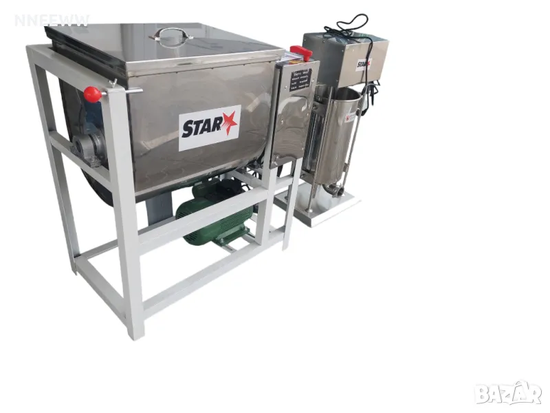 Пълначка =1600лвБъркалка - шнекова за месо и тесто накланяща се купаБъркалка 15кг =550лвБъркалка 25кг=650лвВисококачествена професионална електрическа бъркалказа кайма е изработена изцяло от неръждаема стомана. Материалът съответства на санитарно-хигиенните норми. Не присъстват токсични и други вещества, които биха могли да застрашат здравето на консуматора или да понижат качеството на крайния продукт.Материалът е устойчив на корозия, на намокряне, на окисление под въздействието на контакт с различни видове меса и други15кг-550лв.Размери-60/35/70Размери на бункера-40/33/37Мощност - 1,5kwТегло-45кг.25кг.-650лв.Размери:72/43/88Размери на бункера:43/73/80Мощност - 2,2kwТегло-52кг.Пълначка литра - 990 лева,Пълначка 15 литра - 1100 лева Висококачествена изработкаПрофесионален уредЛесна поддръжкаУправление с педалНяколко скорости на работаСтабилна основаМонофазнаХарактеристики:Обем:15 литраМатериал:неръждаема стоманаРазлични скоростиПрофесионален класПедал за управлениеКрачно управлениеМонофазнаЧетири различни фунии: 16/22/32/38 ммФуниите са с дължина: 19 см