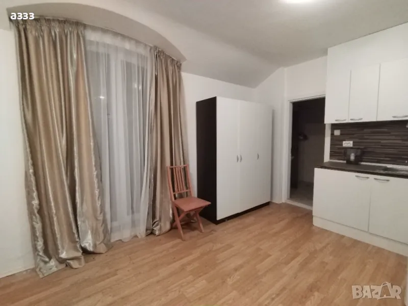 Състои се от голяма стая с кухненски ъгъл, френски прозорец с кокетна мини тераса. Баня и тоалетна