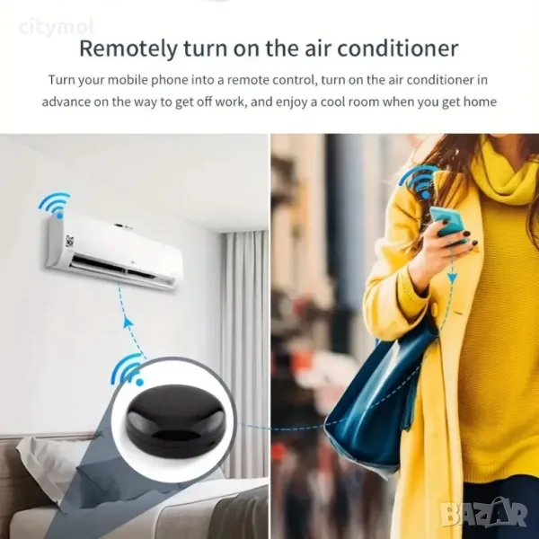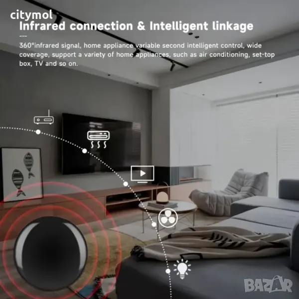WiFi към IR дистанционно управление е вашият помощник в управлението на уреди с инфрачервена връзка. Това е универсално дистанционно, с което можа да управлявате телевизор, климатик, звукова уредба, автоматизирани щори и завеси и др. Може да го свържите с Google Home или Amazon Alexa и да имате и гласов контрол на уредите си. Устройството идентифицира инфрачервените сигнали за дистанционно управление и съхранява тези сигнали с функция за самообучение. Има вградена библиотека на IR кодове, които по подразбиране поддържат повечето марки инфрачервени устройства. Малкият му размер позволява да се монтира на удобно за вас място.