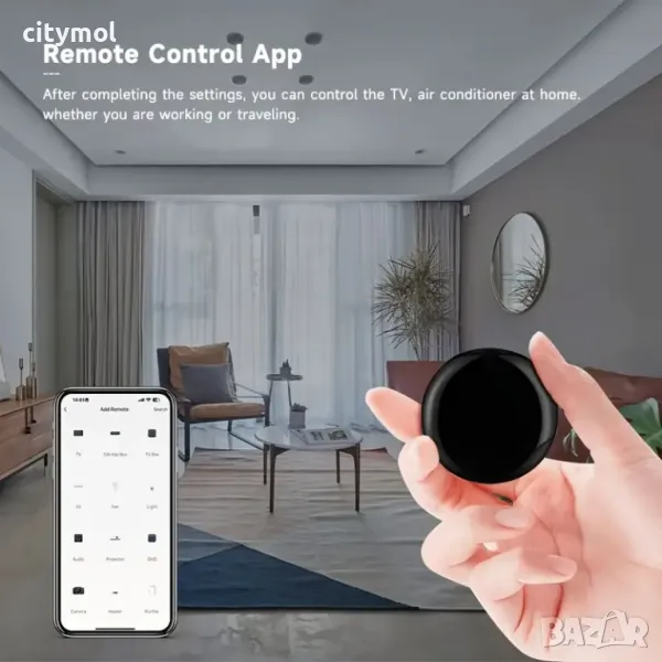 Това е универсално дистанционно, чрез което може да контролирате уредите си от смартфон или таблет от всяка точка на света.