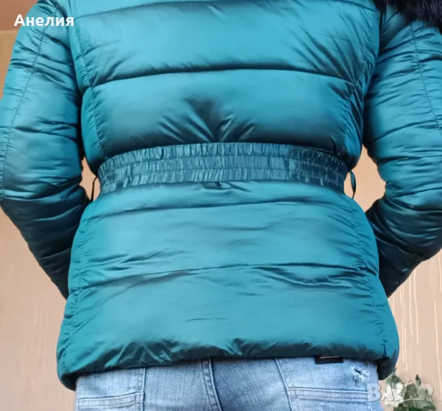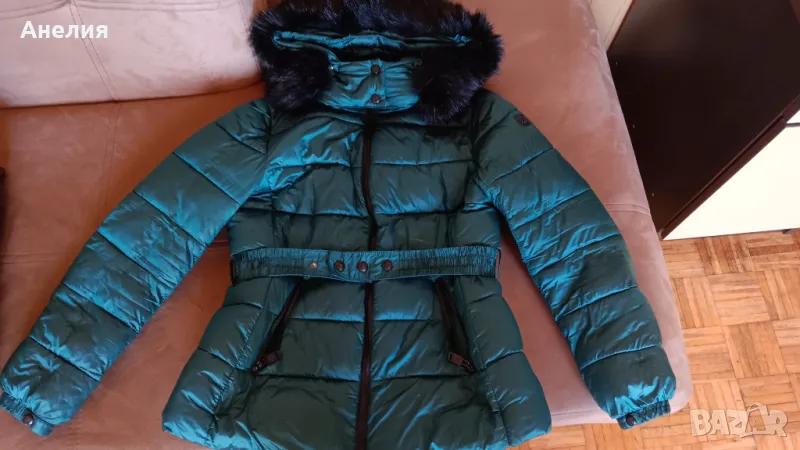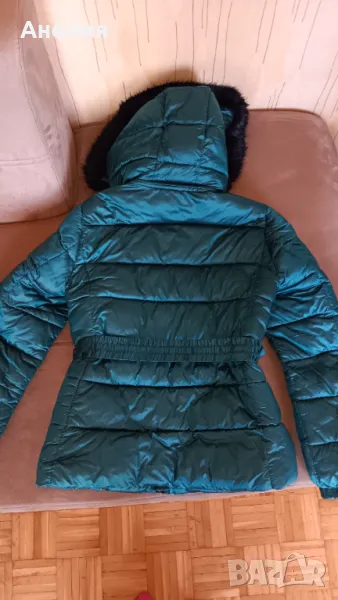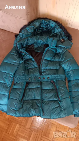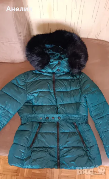 Дамско модерно зимно яке със сваляща се къчулка с цип с естествен пух. Дължина на якето 65 см. Гръдна обиколка 102-106 см. Дължина на ръкава 62 см.