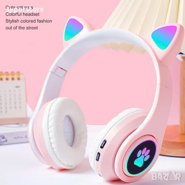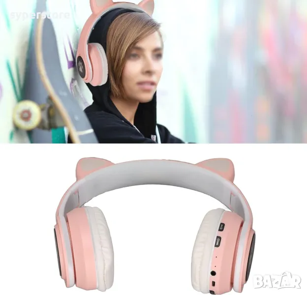 Слушалки безжични Bluetooth Cat Digital One SP00974 STN-28(Pink) Блутут розови с микрофон, светещи