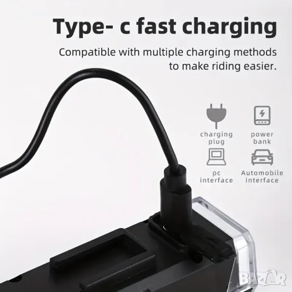 Бързо зареждане и висок капацитет на батерията: фенерът за велосипед може да се зарежда бързо с USBType C кабела, включен в пакета.