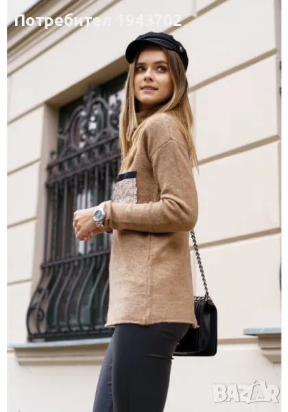 Дамска блуза с дълъг ръкав в цвят капучино, модел 321950.