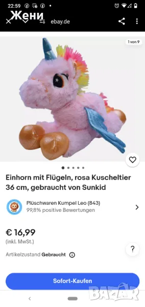Играчката е оригинална Sunkid, в отлично състояние, като нова. Свети в променящи се светлини и нюанси. Със сменяеми батерии. Имам и синьо в друга моя обява.