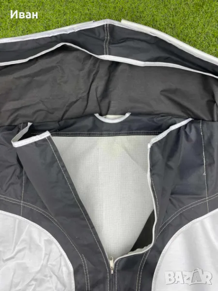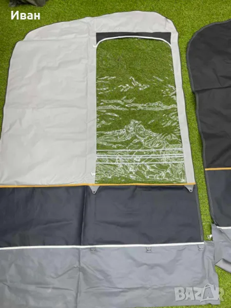 Форселта е като нов и напълно окомплектован.Само минимални следи от изцапано тук-там. Към форселта може да се добави оригинален висок анекс(опция). Изключително издръжлива дишаща,непромокаема четири сезонна материя Ten Cate All Season, която гарантира, че форселта може да се използва целосезонно. С дебел винилов покрив и удебелени калобранни поли.С кедър шнур и на лицето! Изключителна екстра, позволяваща евентуално прикачане на преден сенник или уголемяващ форселт. С комарник.С двупосочни ципове позволяващи отваряне на страниците, както отгоре -надолу, така и странично, образувайки веранда. Може да се обособява врата на всяко място,както отпред така и от двете страни .Също така страниците могат да се премахват и изцяло. Пълен комплект конструкция със стоманени рейки. Изключително здрава и издържаща на бури. С пердета.С пола за под караваната, предпазваща от течения.С пети за монтаж към караваната.С комплект за приковаване .Напълно окомплектован: